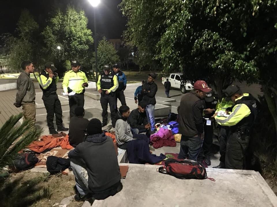 Ibarra. Los espacios públicos del cantón Ibarra, como parques y edificios patrimoniales, se convirtieron en lugares de asentamiento para personas en situación de movilidad. Con carpas improvisadas los migrantes pasaban el día y la noche.