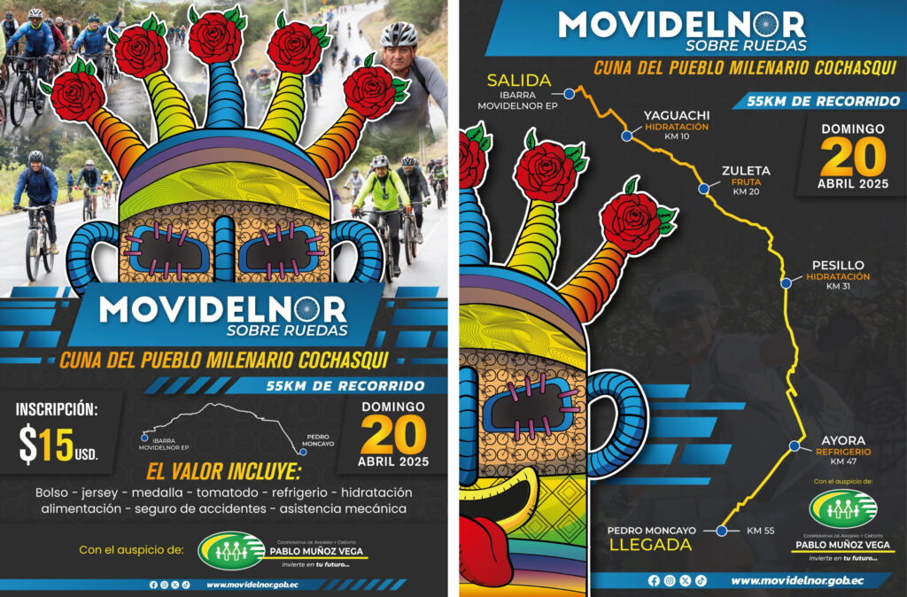 Esta fiesta deportiva se realizará el domingo 20 de abril de 2024 con un recorrido de 55 kilómetros que conectará Ibarra, La Esperanza, Angochahua, Zuleta, Olmedo, Pesillo, Ayora y Pedro Moncayo. La salida está prevista a las 7h00 desde la sede matriz de Movidelnor (Borrero y Zaldumbide) con destino a Zuleta, donde los ciclistas tomarán la ruta alterna hacia el norte de Pichincha.