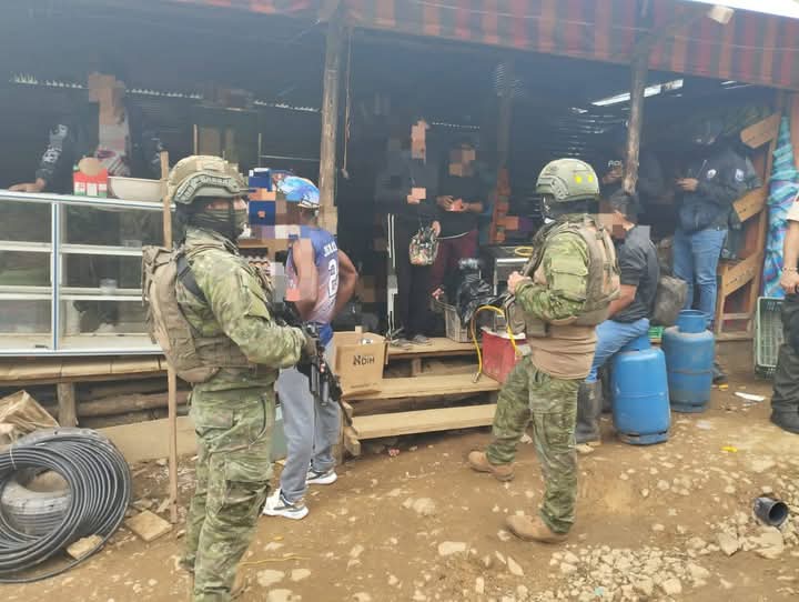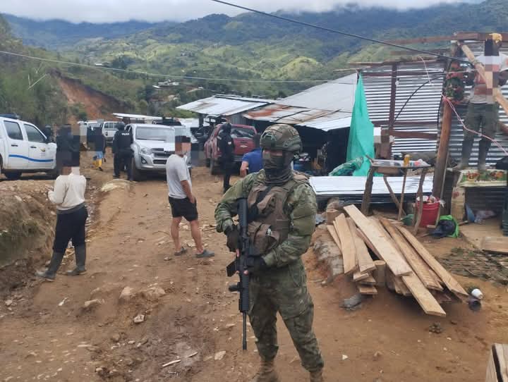 En el marco de las acciones para recuperar el control en la Zona Minera Norte, personal militar del GCM36 Yaguachi, en coordinación con unidades especializadas de la Policía Nacional (GOE, GIR y HUMO), ejecutó una operación de desalojo en el sector conocido como la «Y de Cristal».