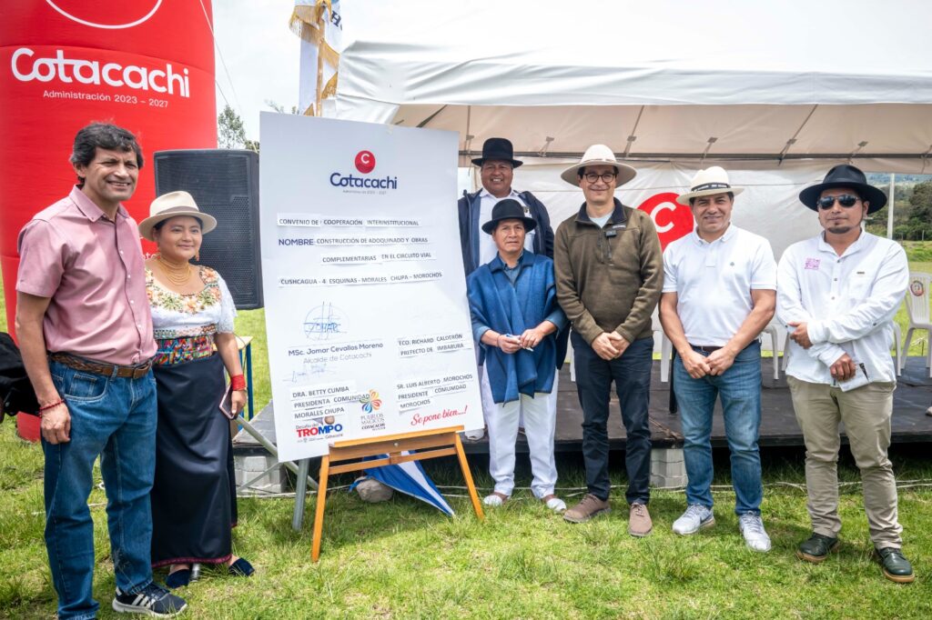 - Alrededor de 5 kilómetros de vía que corresponde al sector Cushcagua – 4 Esquinas – Morales Chupa – Morochos serán adoquinados tras la firma de convenio entre la administración del Vivir Bien del Municipio de Cotacachi, la Prefectura y las comunidades de Morochos y Morales Chupa.