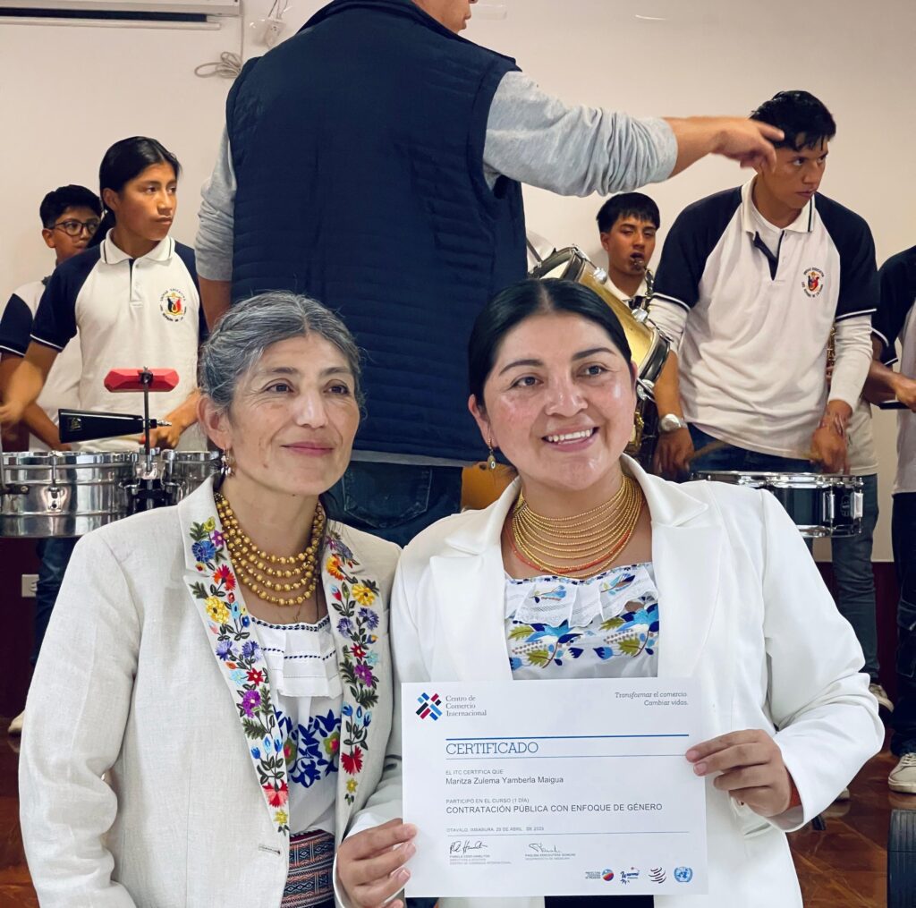 «Esa es una de las brechas de género que Warmi Imbabura trabaja, necesitamos que haya más mujeres formadas y sean proveedoras del Estado, que accedan a la contratación pública, debemos estar sí en los cuidados (alimentación, limpieza, productos, etc), pero también, debemos estar donde hay más recursos, es decir, como arquitectas, ingenieras, jefas de obra hacia allá es donde vamos”.