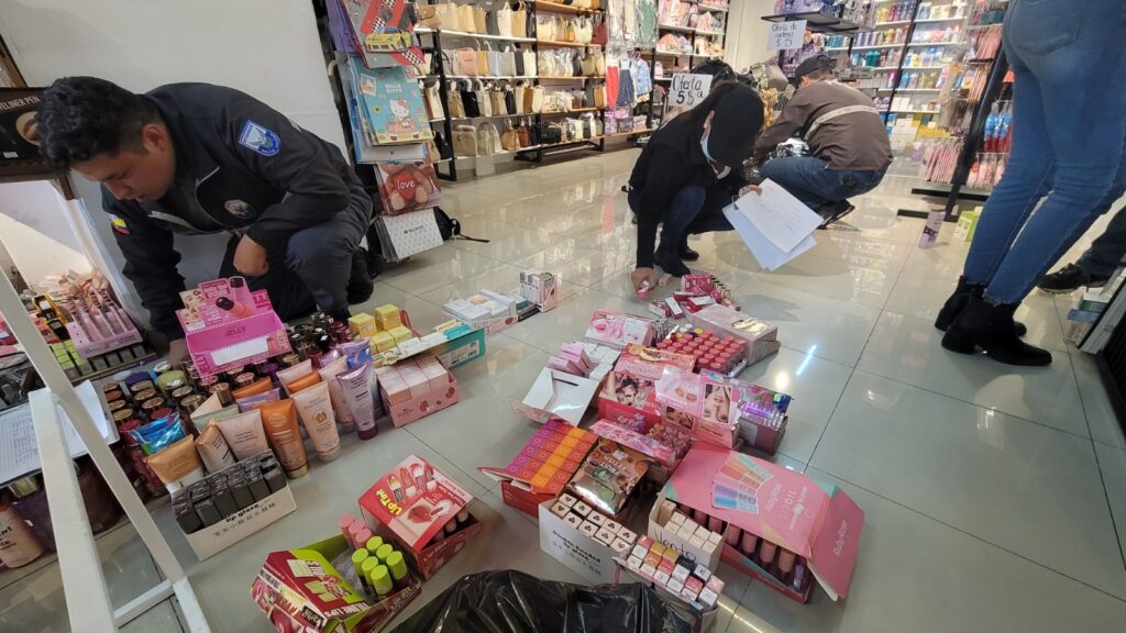 Técnicos de la Coordinación Zonal 1 de la Agencia Nacional de Regulación, Control y Vigilancia Sanitaria (Arcsa), con el apoyo del personal de la Unidad de Delitos Aduaneros y Régimen de Desarrollo de la Policía Nacional (UDAR), realizaron un control a un establecimiento de comercialización de cosméticos en la ciudad de Ibarra, donde se realizó la inmovilización de varios productos que no cumplían con la normativa sanitaria nacional.