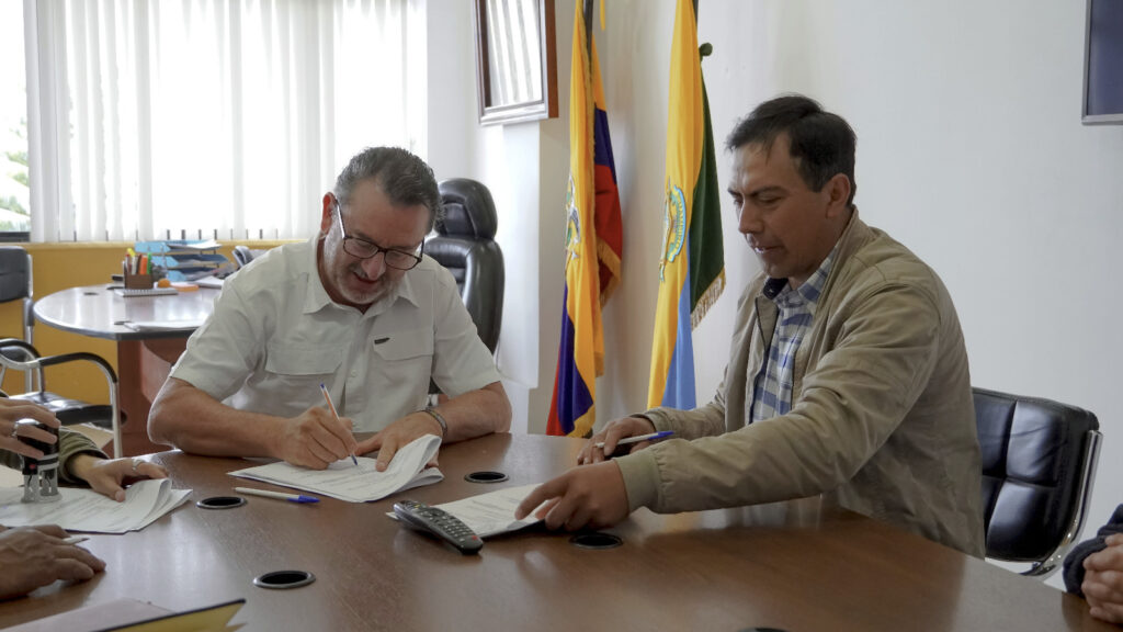 El Alcalde de Pimampiro, Ec. Oscar Narváez, destacó: “Luego de ocho días de que la parroquia de Chugá realizó el cambio de prioridad de su presupuesto participativo, hoy firmamos este convenio con la Junta Parroquial y la Junta de Riego La Magdalena para iniciar la adquisición de tubería que mejorará las condiciones del canal de riego. Es un trabajo conjunto entre las tres entidades y esperamos que en dos o tres días llegue la tubería para continuar con las obras en el sector”.
