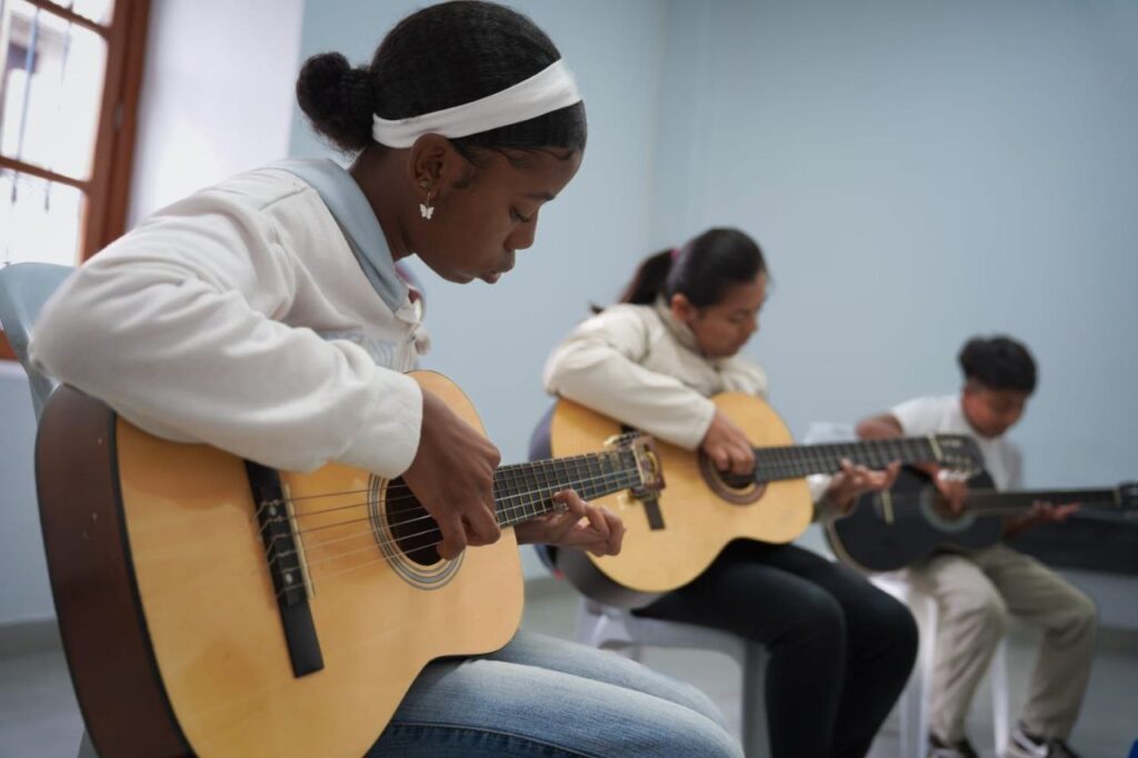 La inversión municipal, que supera los $230.000 USD, ha permitido la insonorización de salas, adquisición de instrumentos musicales y contratación de profesionales, beneficiando a más de 220 personas entre niños, jóvenes y adultos mayores. Sandra Robalino docente municipal de Coro y Violonchelo señaló: “Este espacio es fundamental para fortalecer la formación artística y ofrecer condiciones ideales para el aprendizaje musical en la provincia”. Dayana Males estudiantes de flauta traversa del programa orquestal y Coral, inicio su capacitación en el 2023 y señala: “Esta fue una de las mejores iniciativas que ha tenido el Municipio de Ibarra, la música es universal, abre caminos, abre fronteras y es un pasatiempo único que me permite interrelacionarme con más jóvenes y lo que más me ha gustado es que ya soy parte de la orquesta y coro y me invitan a presentaciones y eventos y es lo que más me ha gustado compartir nuestro arte con el público”. Además, desde la Dirección de Educación Cultura y Patrimonio se impulsa el innovador proyecto Semilleros del Arte, que busca profesionalizar a músicos de las zonas rurales del cantón e inculcar en niños y jóvenes el amor por la música. Carlos Buitrón coordinador de los semilleros puntualizó sobre esta iniciativa: “Los semilleros promueven una formación integral que conecta la tradición con nuevas oportunidades para los talentos locales”. En la actualidad existen 5 semilleros en el Cantón denominados Semilleros de: Rumipamba, Zuleta, Coro los CADIS, de jóvenes urbanos y el Grupo Cuarenta grados. Las clases son impartidas de lunes a viernes en diferentes horarios y operan en los diferentes sectores con clases teóricas y prácticas de guitarra, trompeta, percusión y piano. José Sandoval, estudiante del “Semillero del Arte de Zuleta” indicó: «Nos sentimos muy agradecidos con la Municipalidad por enaltecer nuestra cultura. Para nosotros, tener la oportunidad de aprender a leer partituras musicales, conocer lo que son los acordes nos permite mejorar nuestro trabajo en la parte teórica y práctica. La municipalidad además como resultado de este trabajo ha realizado varias producciones musicales y visuales “Hoy tenemos grabaciones de nuestra música y hasta videos para que la ciudadanía conozca nuestro talento”, señaló Sandoval. Con este sólido compromiso con la cultura y la formación musical, el Centro de Artes Municipal de Ibarra no solo enriquece la vida de sus habitantes, sino que también siembra las bases para un futuro lleno de talento, identidad y desarrollo en el cantón.